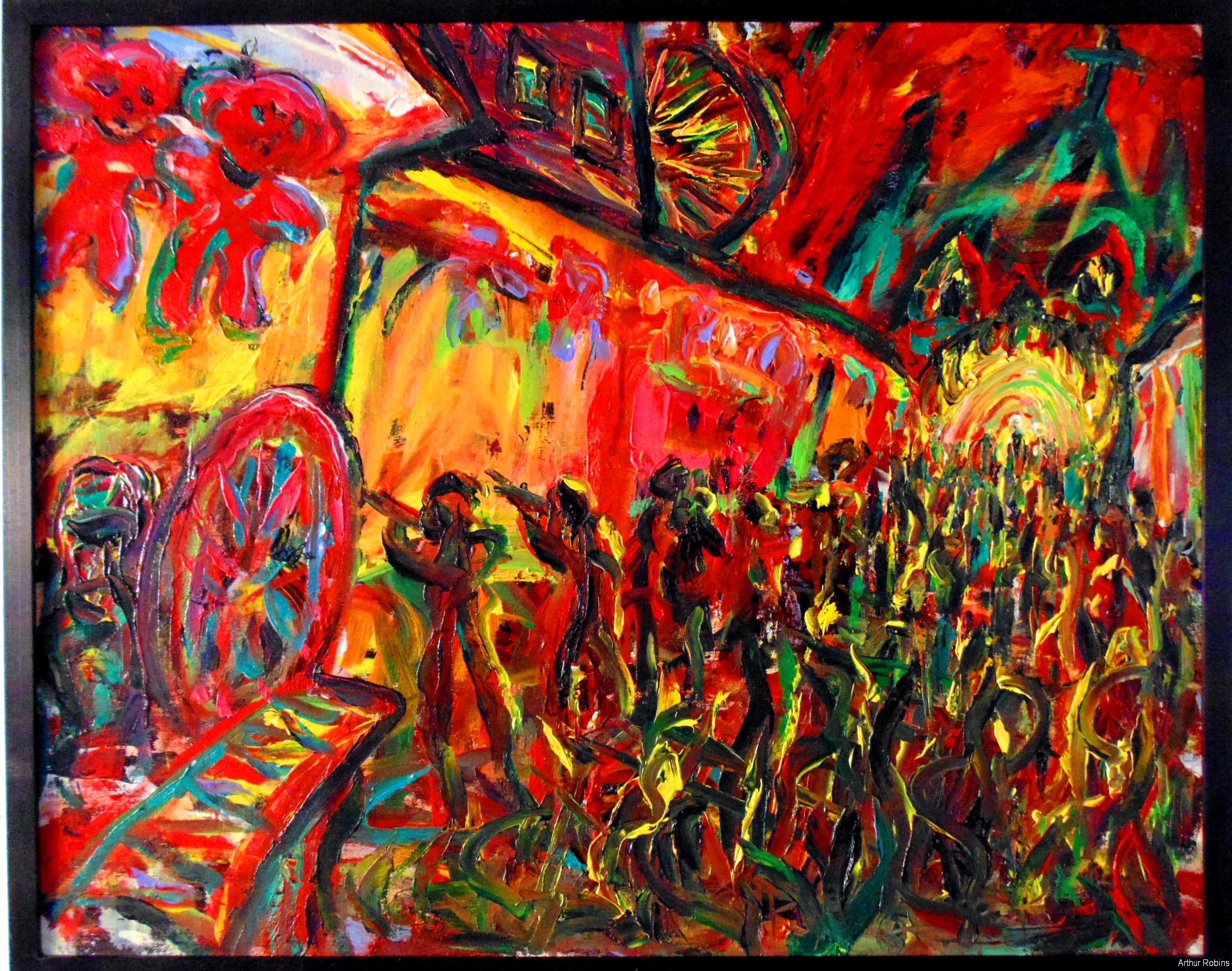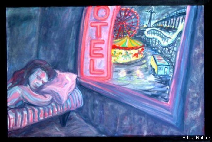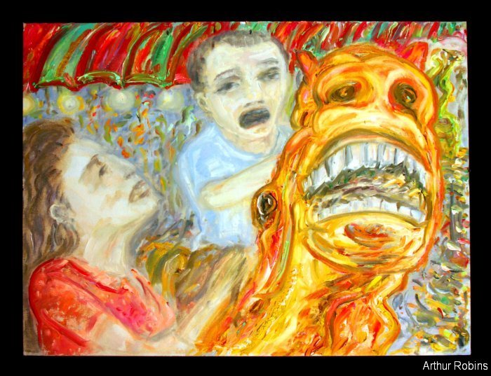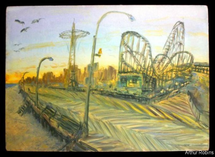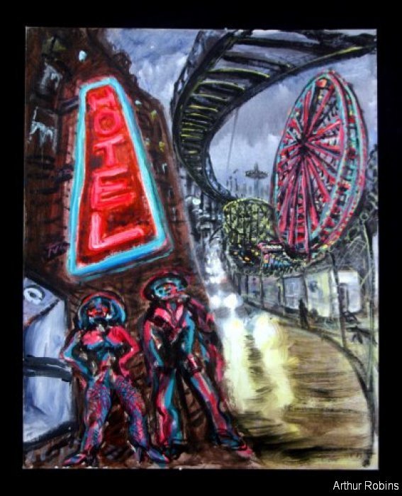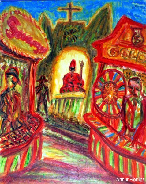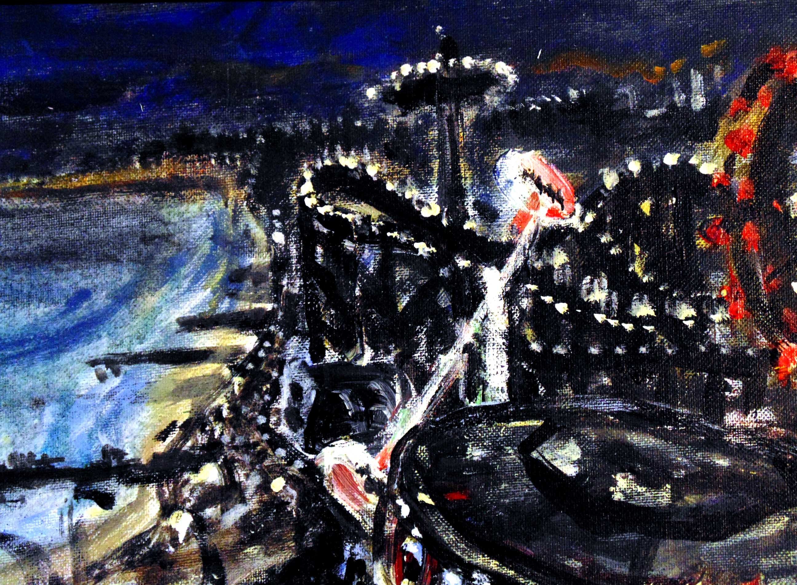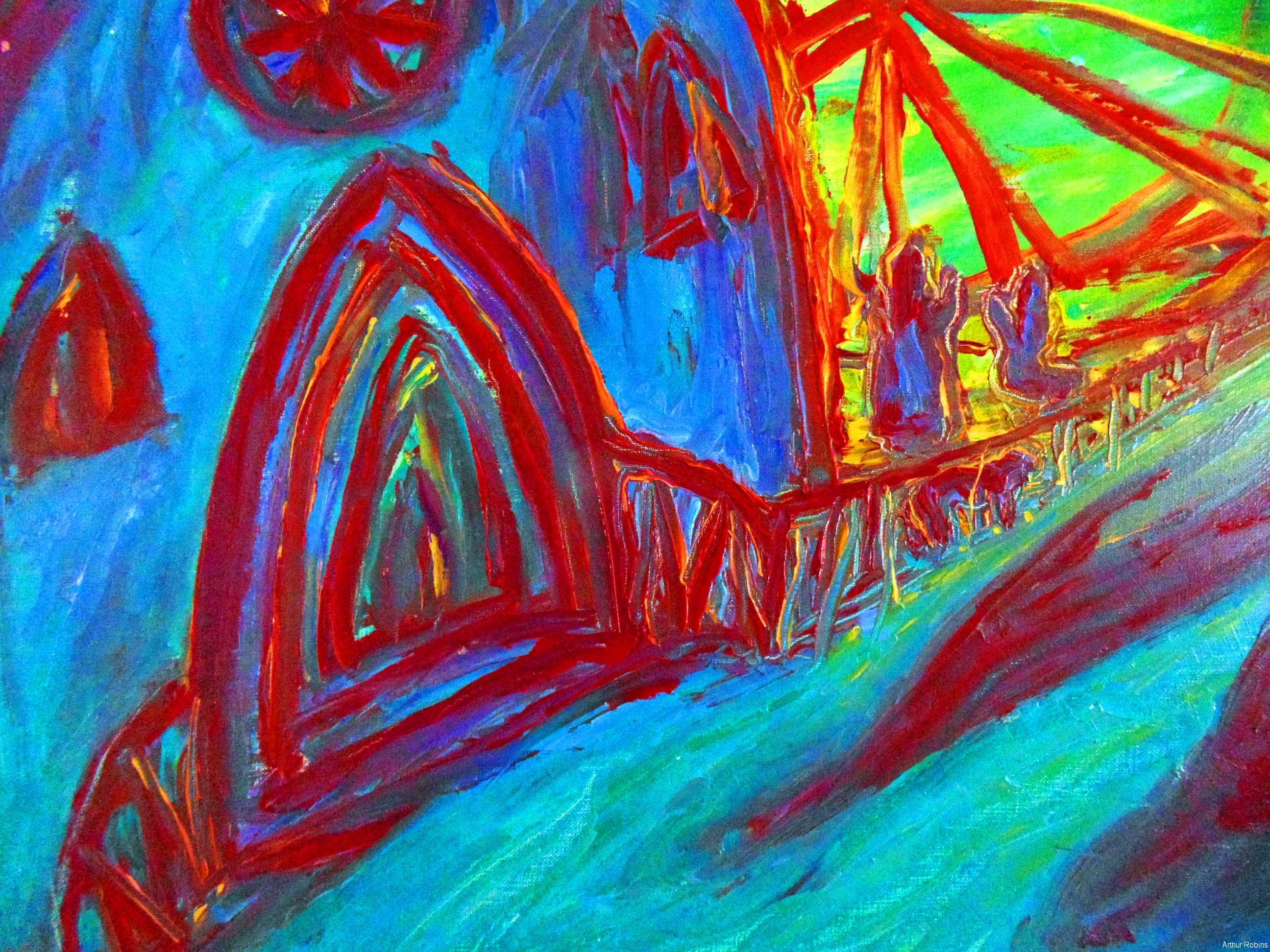 CARNIVALS. These paintings are inspired by, Coney Island, The Feast of San Genarro, The Circus, Street Carnivals, and other festive gatherings where such things exist. The images of Merry Go Rounds, Roller Coasters, Spooky rides, Tilt-a whirls, Bumping cars, reside in our mass subconsciousness. Combined with hot dogs, French fries, cotton candy, ice cream, ferris wheels, and gangsters, the carnival images are a surreal backdrop to Americana and the culture which it springs from.