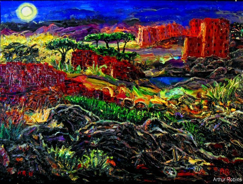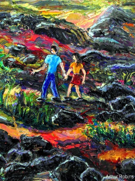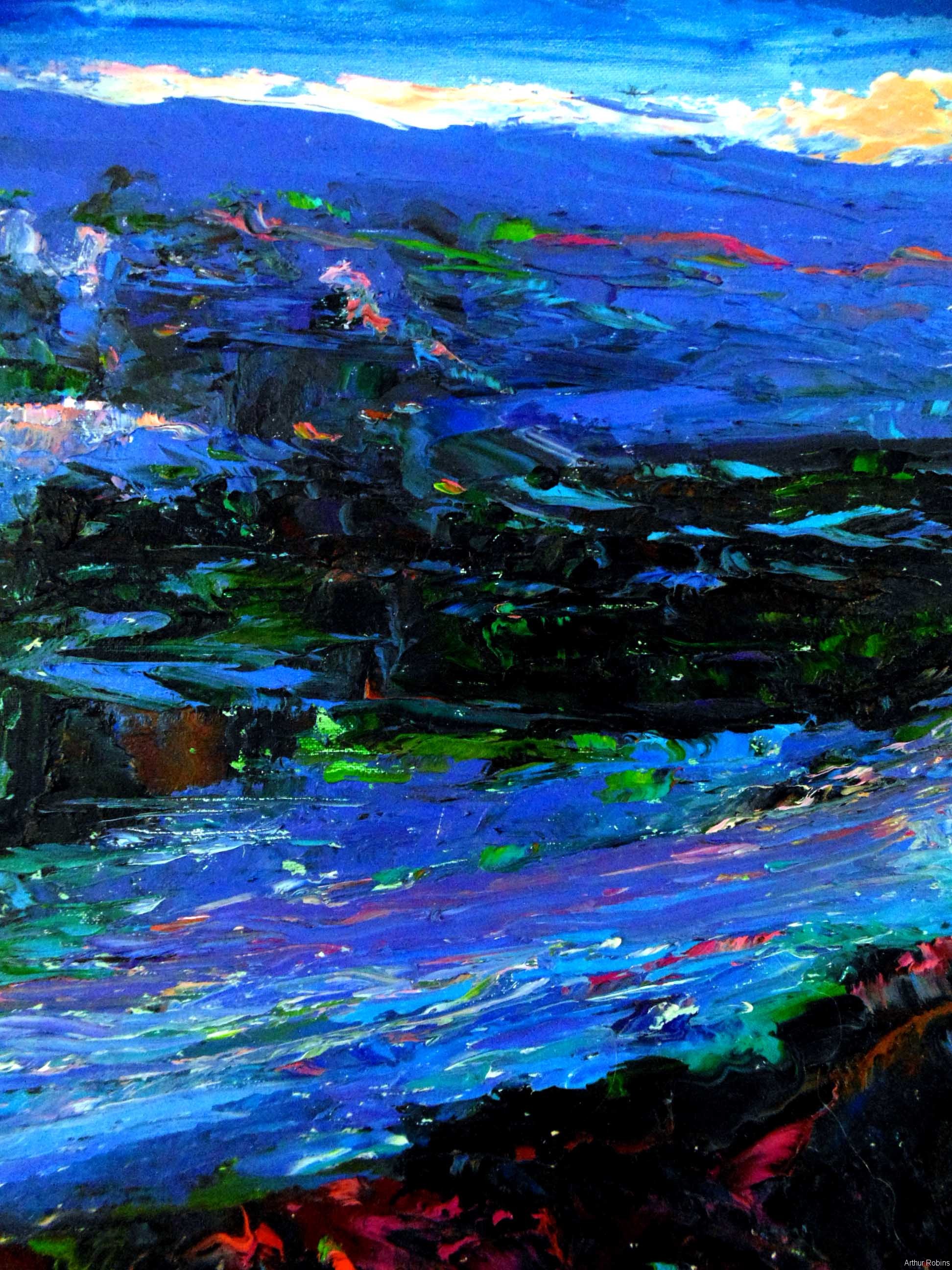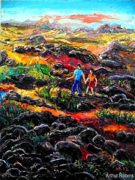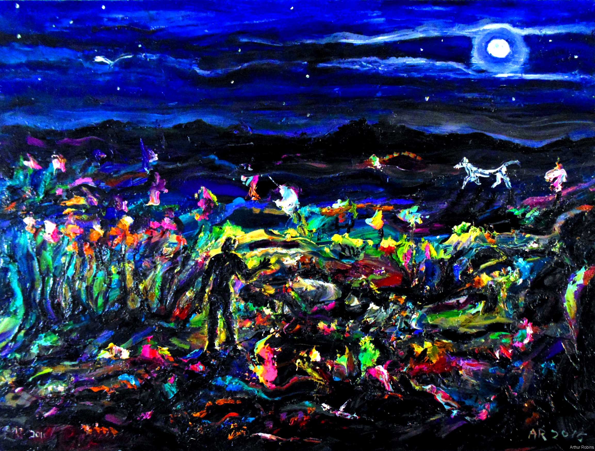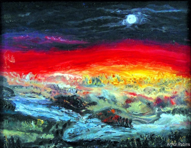 LANDSCAPES. Most of my landscape paintings are from a combination of imagination and memory. Some are from life drawings. These paintings include, colorful plant life, night landscapes, dream landscapes, mountains and rivers, lakes and ponds, rocky cliffs, landscapes with animals, landscapes with people, dreamscapes, surreal landscapes.